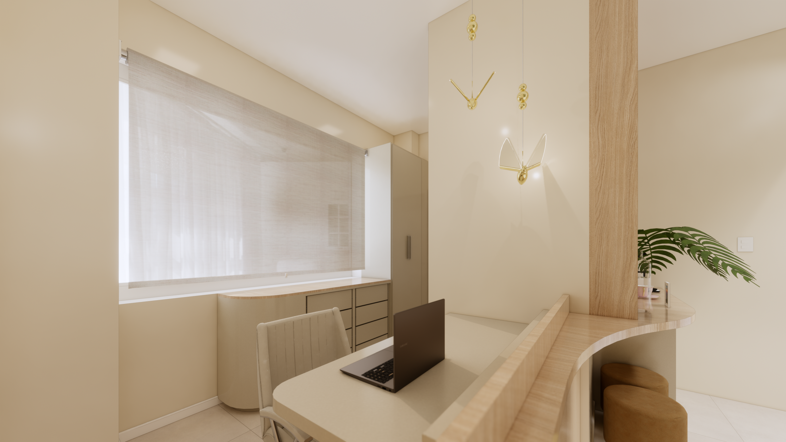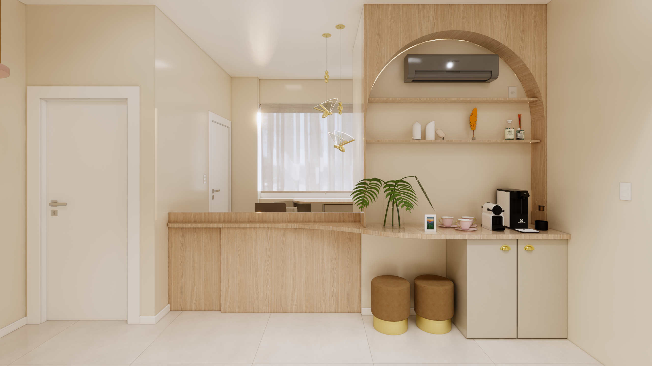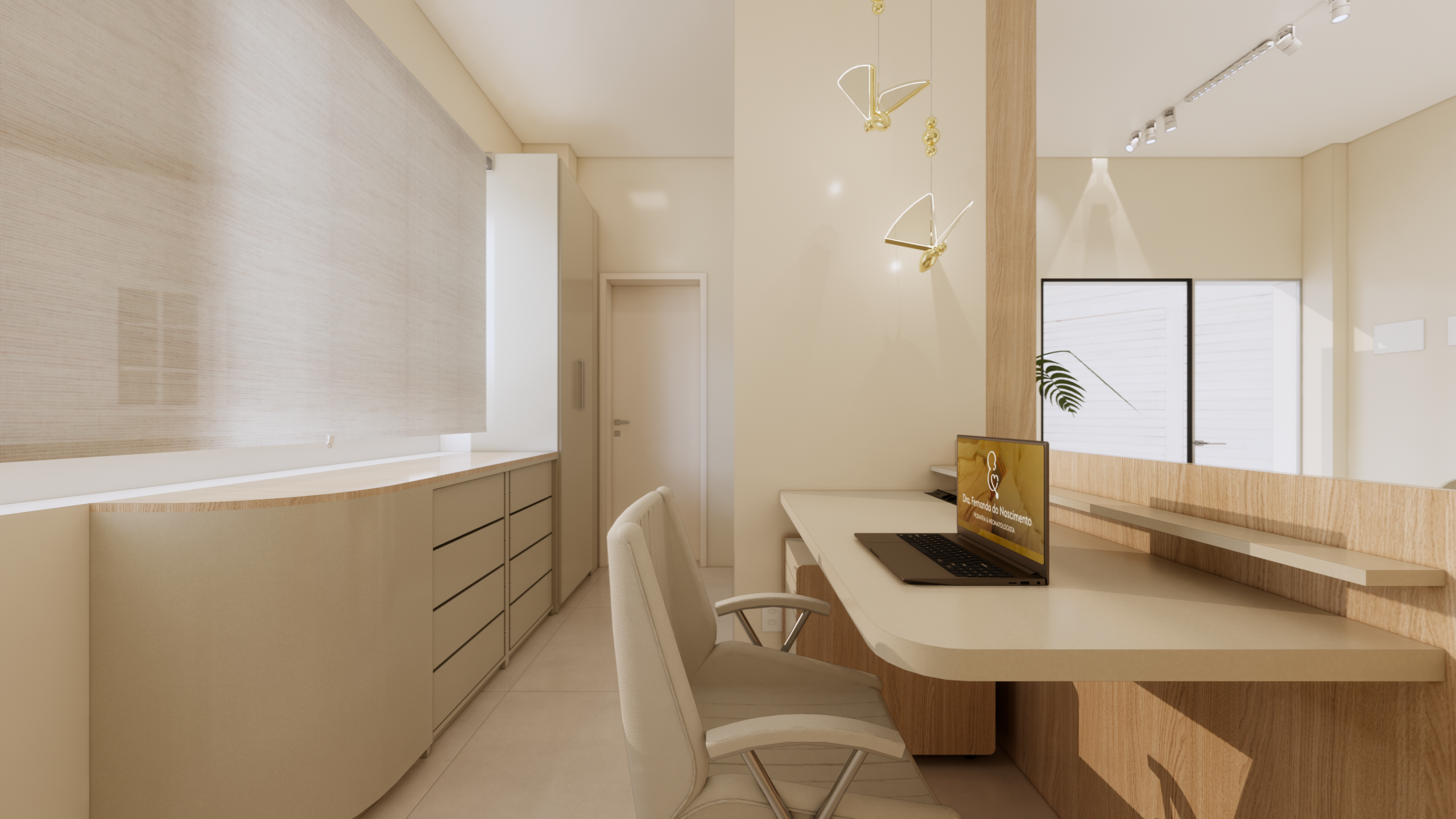 O projeto foi pensado para proporcionar um ambiente acolhedor e tranquilo para a doutora, seus pacientes e visitantes. Com uma atmosfera delicada e suave, buscando transmitir conforto e segurança em cada detalhe do espaço.