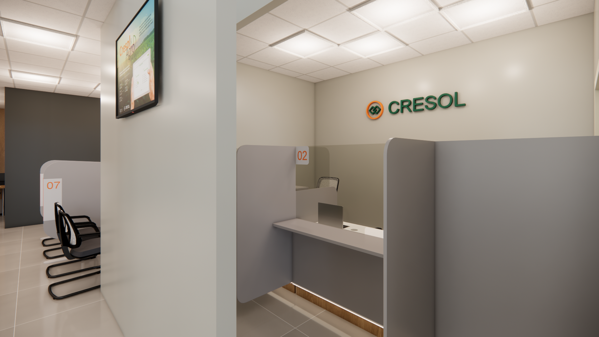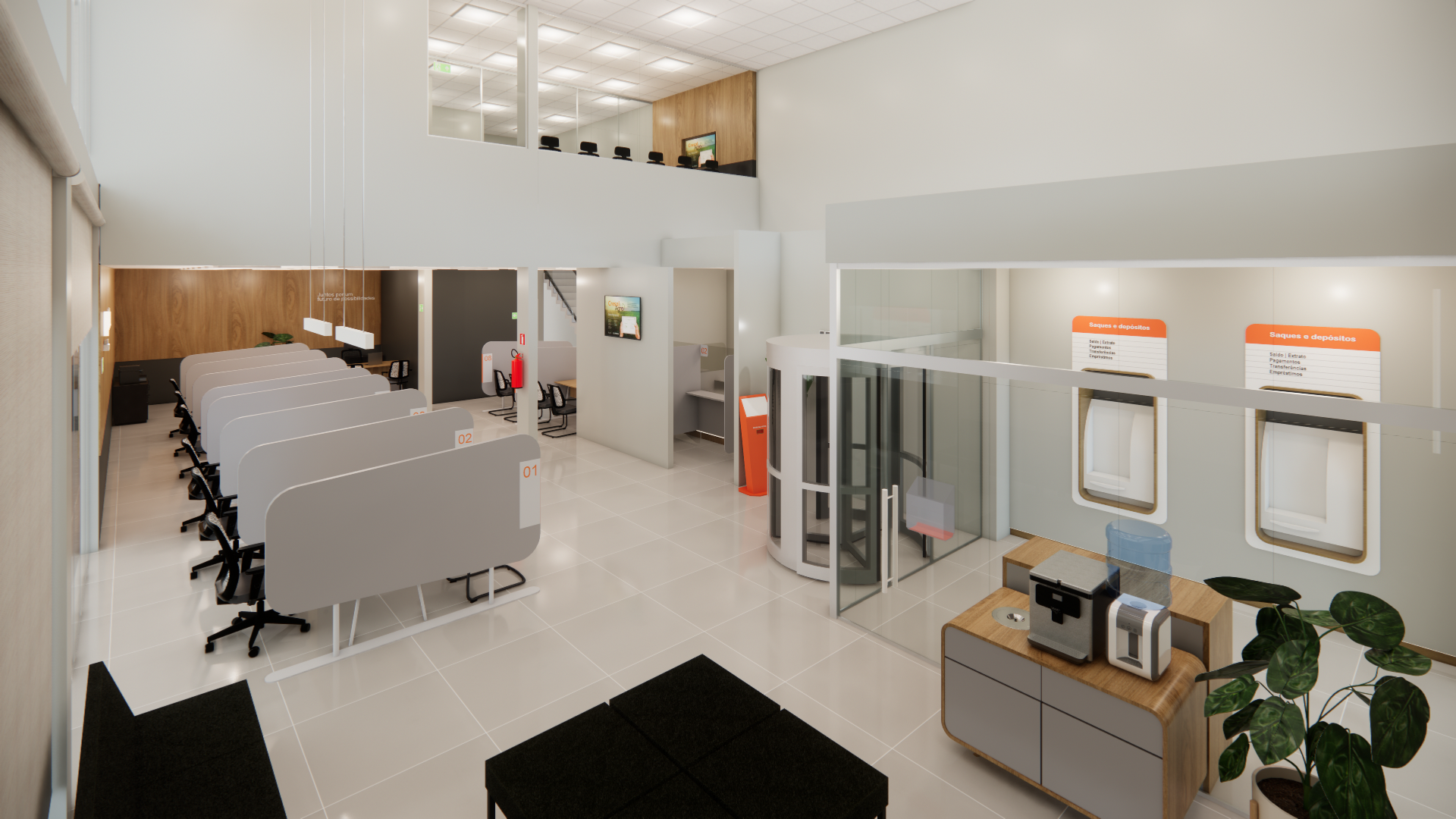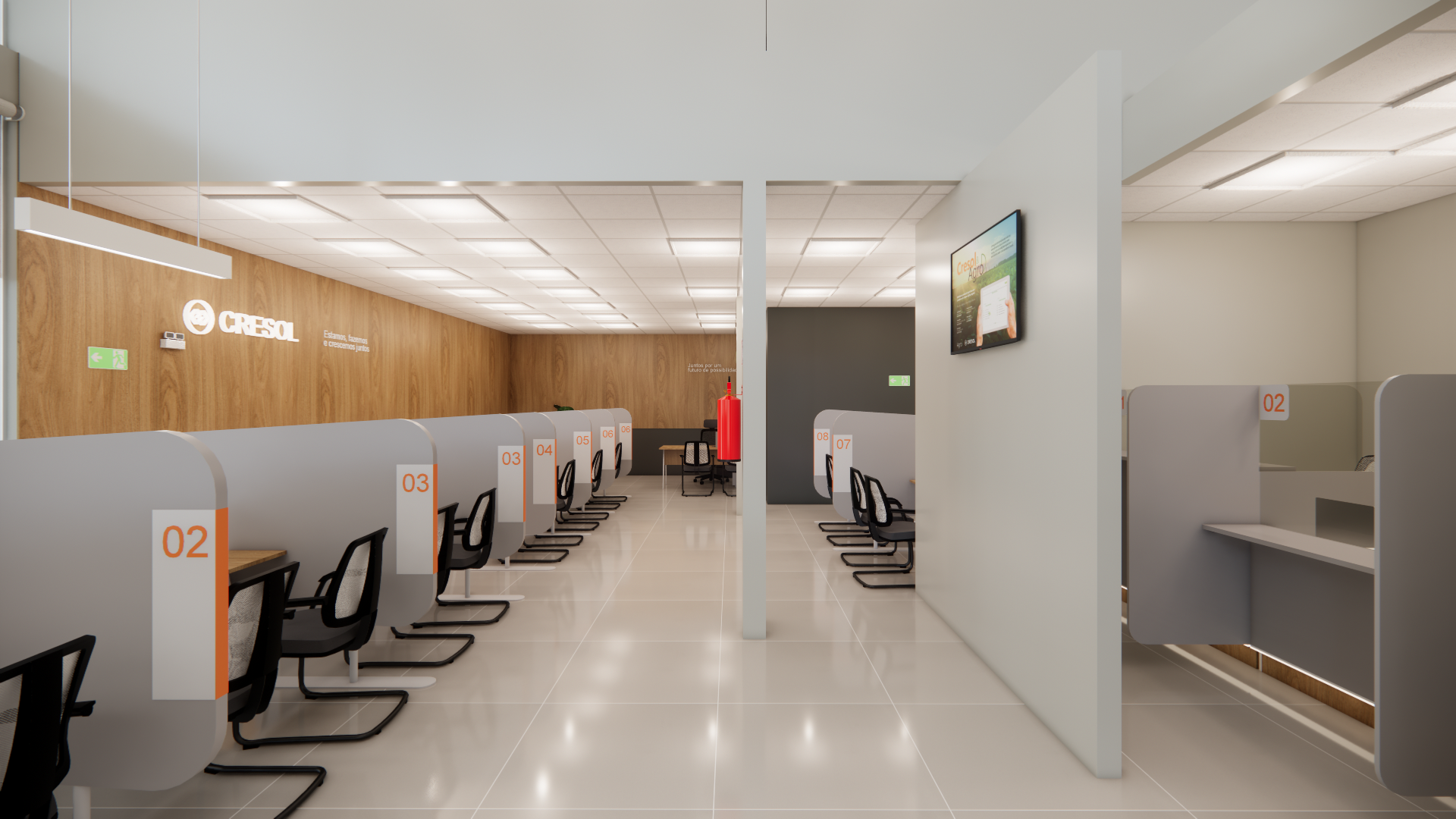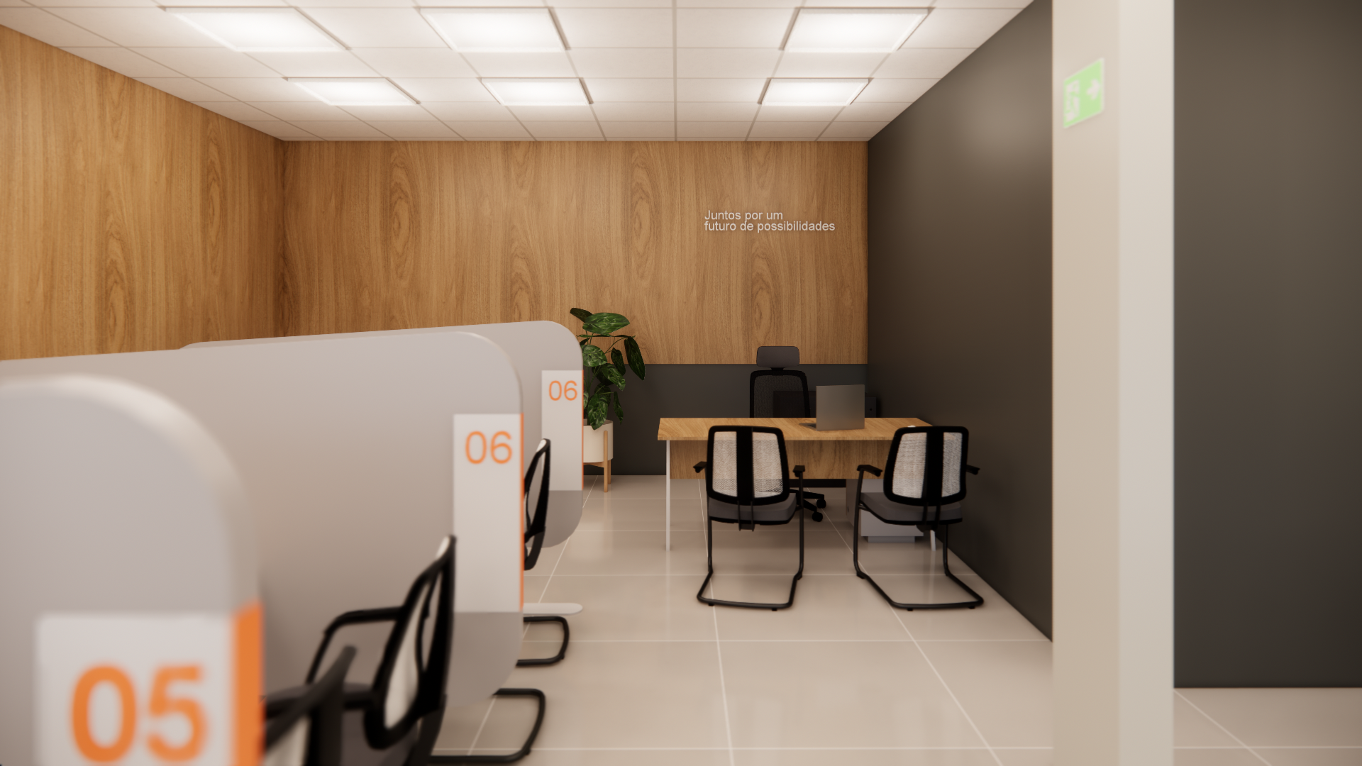 Com um pé direito duplo que amplia o ambiente, buscamos proporcionar uma experiência confortável e familiar aos associados. Internamente, seguimos o manual da marca para garantir uma comunicação visual clara e coesa. O resultado foi um espaço moderno e acolhedor, projetado para atender às necessidades da comunidade.