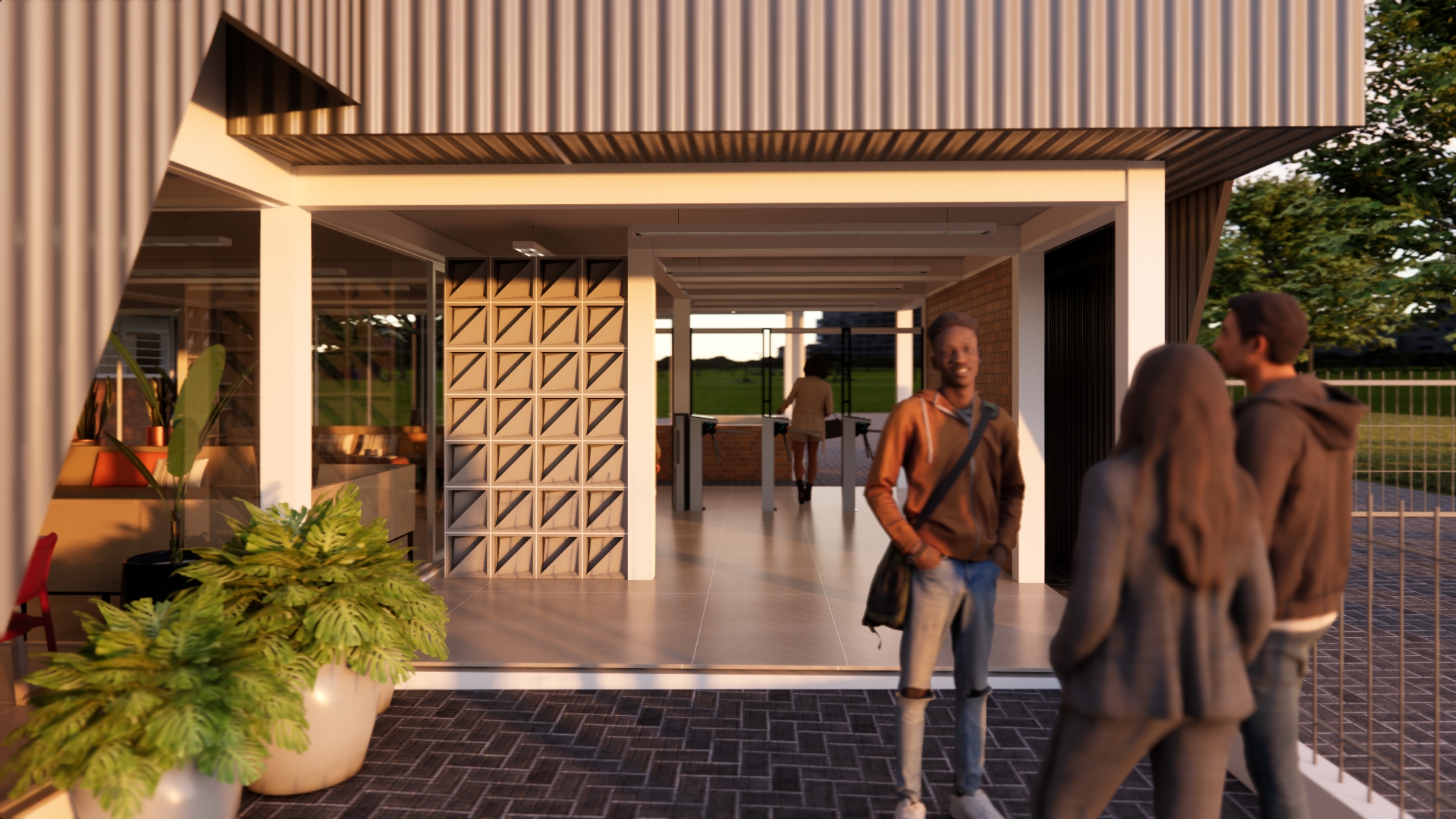 Outro destaque do projeto é a integração de vegetação ao ambiente interno, reforçando a sensação de acolhimento e conexão com a natureza, contribuindo para uma experiência mais agradável durante as pausas.