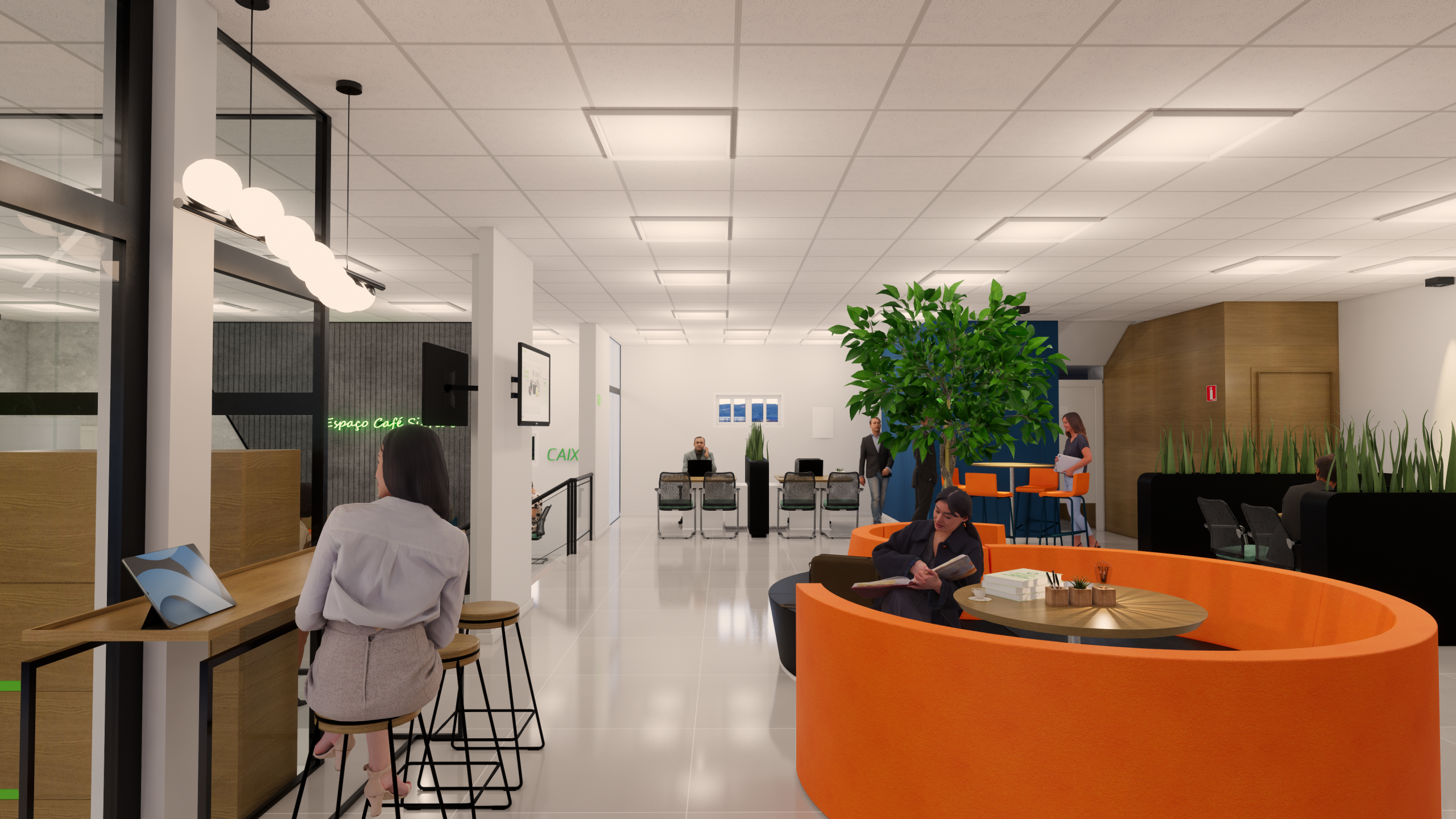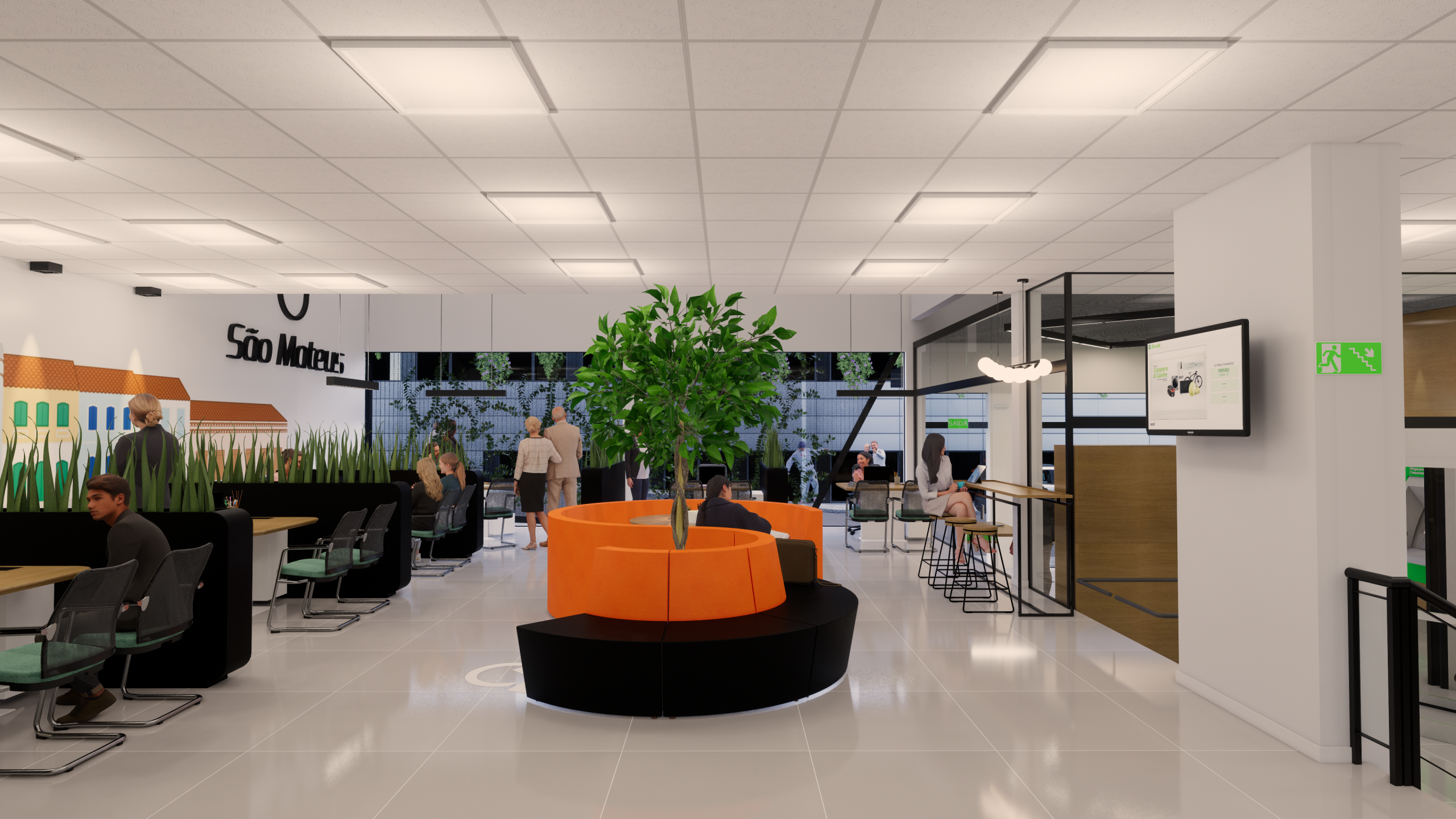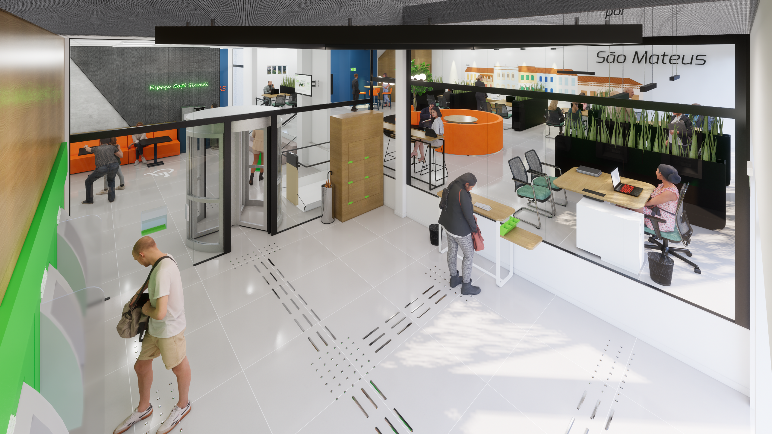 A Agência Sicredi São Mateus é uma agência moderna e atrativa que possui espaços personalizados para todos os públicos, possui traços criativos, construídos através do trabalho co-participativo com nosso cliente.