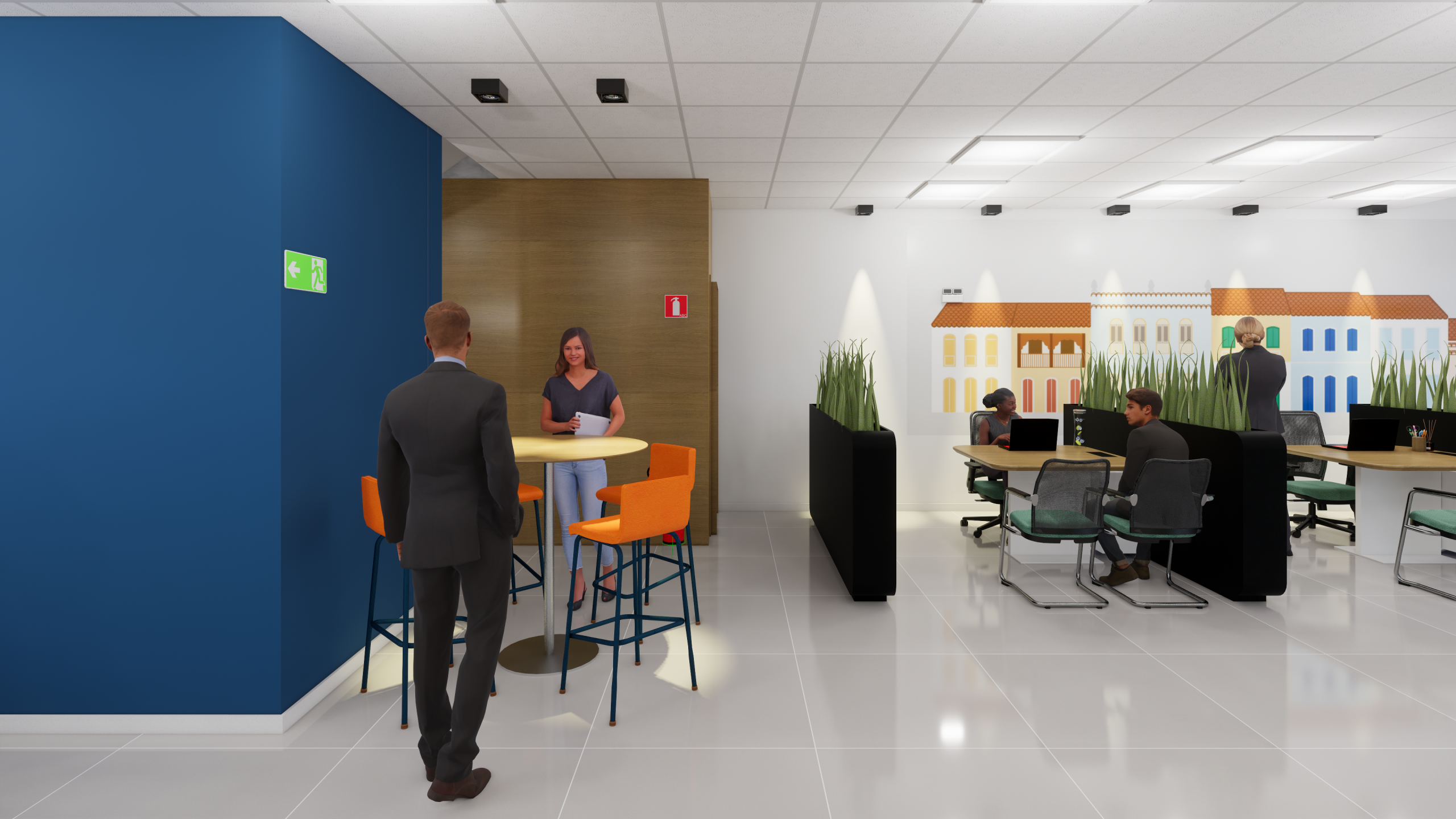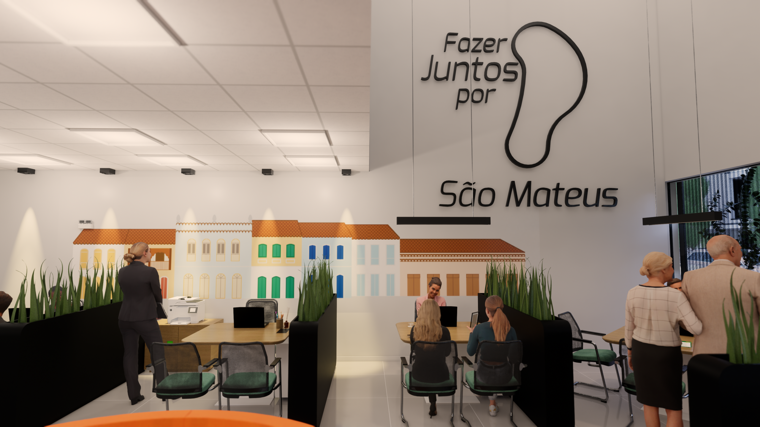 Mesmo com essa abordagem contemporânea, buscamos preservar e valorizar a conexão com a história e a identidade local. Elementos temáticos da cidade foram incorporados ao espaço por meio de ilustrações nas paredes, trazendo à tona símbolos e paisagens que fazem parte do imaginário coletivo da comunidade. Assim, o associado é convidado a reconhecer sua própria história no ambiente, reforçando o sentimento de pertencimento.