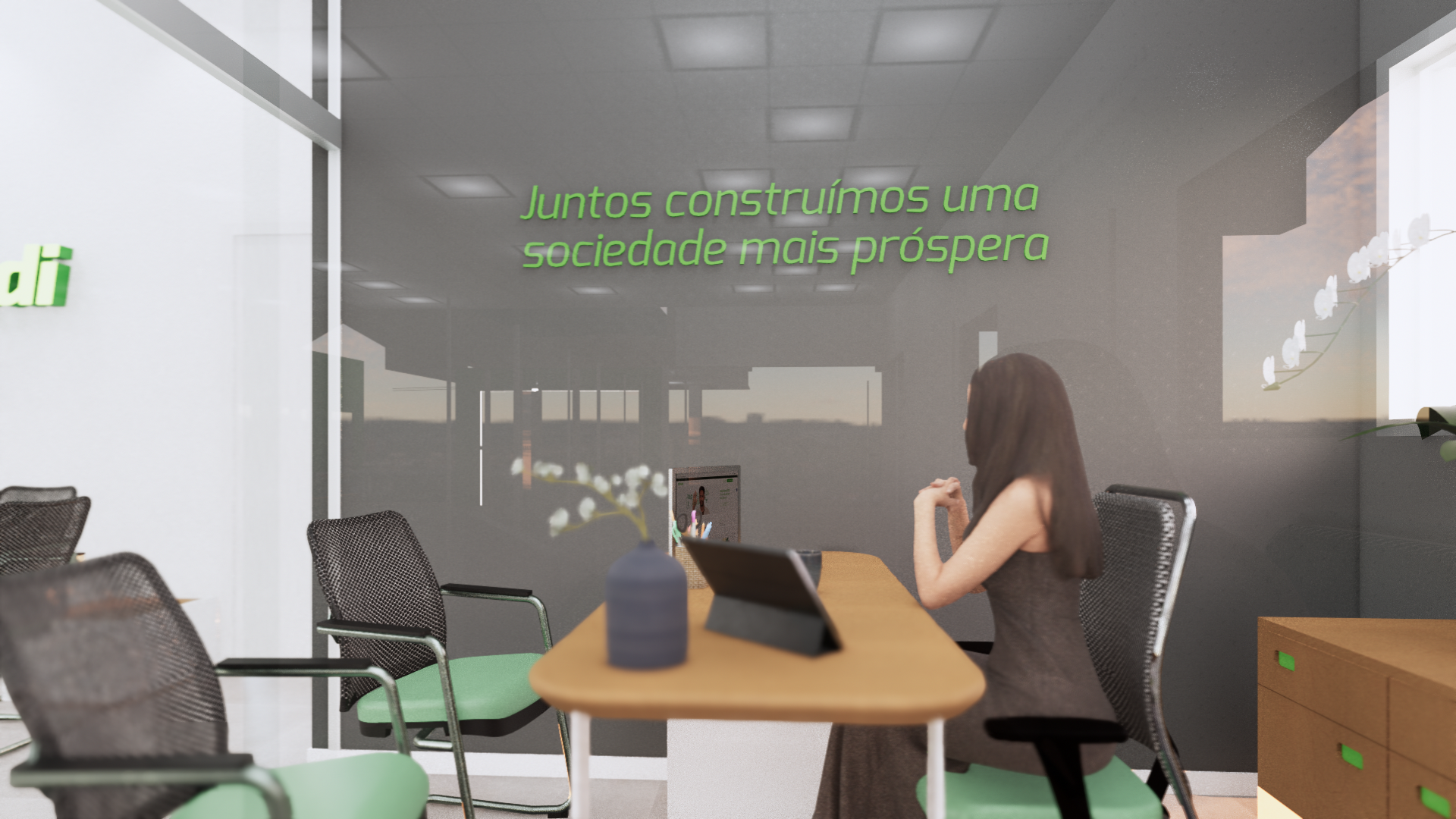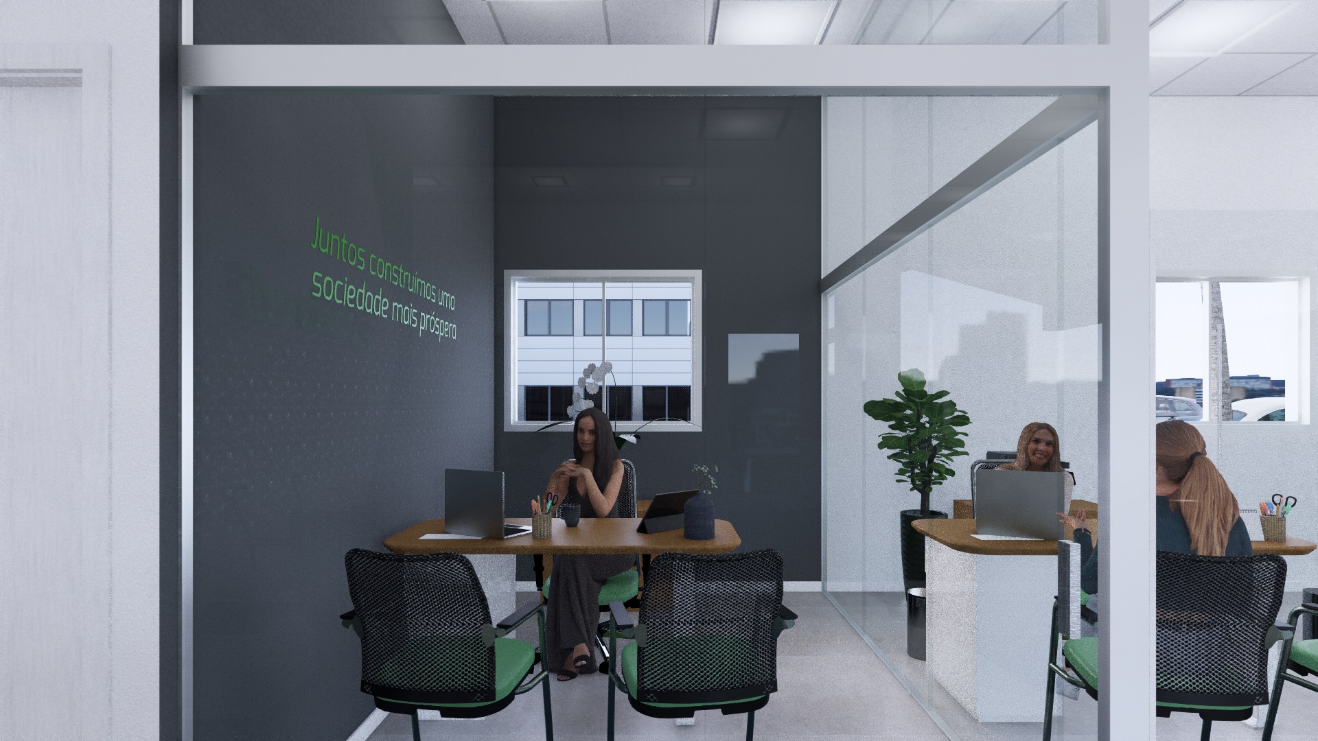 O projeto da Agência de Victor Graeff, foi um grande desafio na execução. Usamos como premissa arquitetônica manter a fachada do prédio existente, porém uma das expectativas do cliente era ter um pé direito mais alto, então complementamos as alturas da fachada de forma que não impactasse o que já existia e ainda assim escondesse o novo telhado e mais alto.